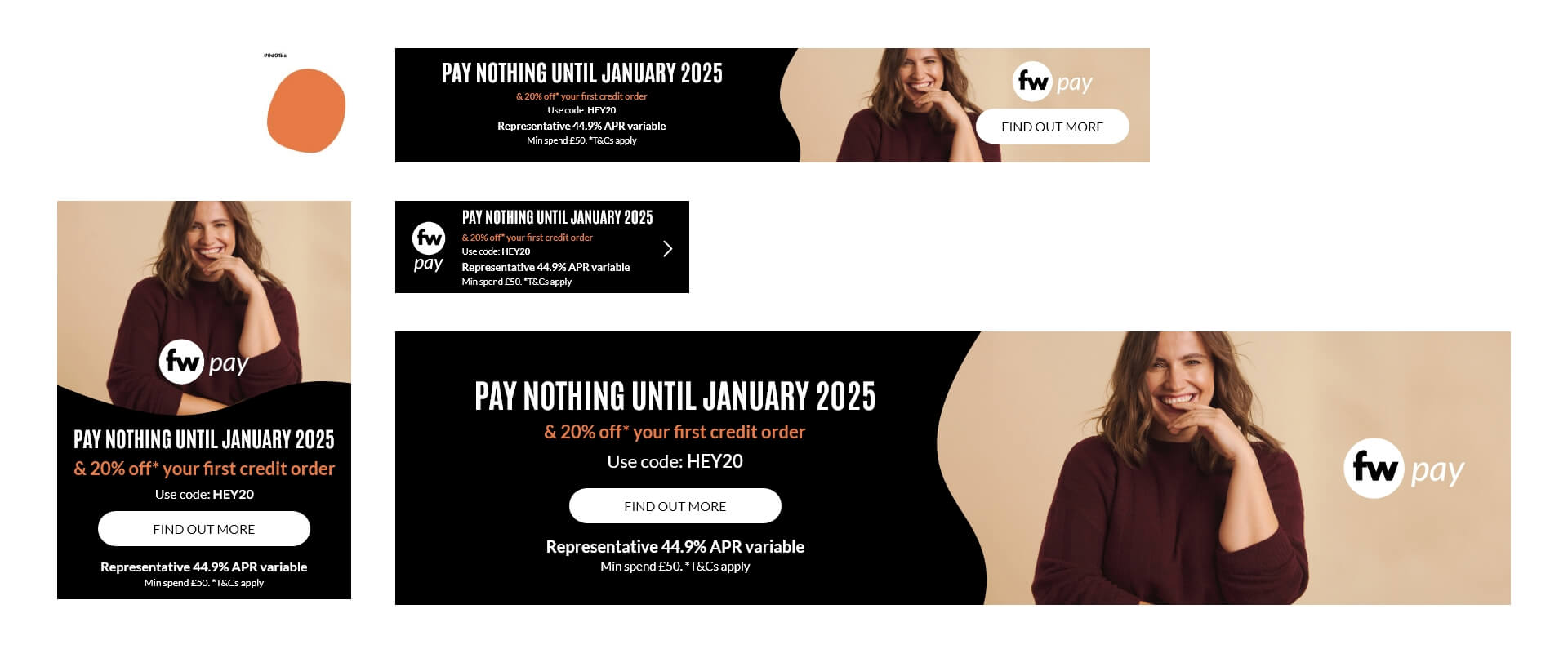 Digital banners created for external brands selling their products on the company’s retail websites. This involved designing assets for homepage and category placements that showcased the guest brand’s products while fitting the specific requirements of the N Brown sites.