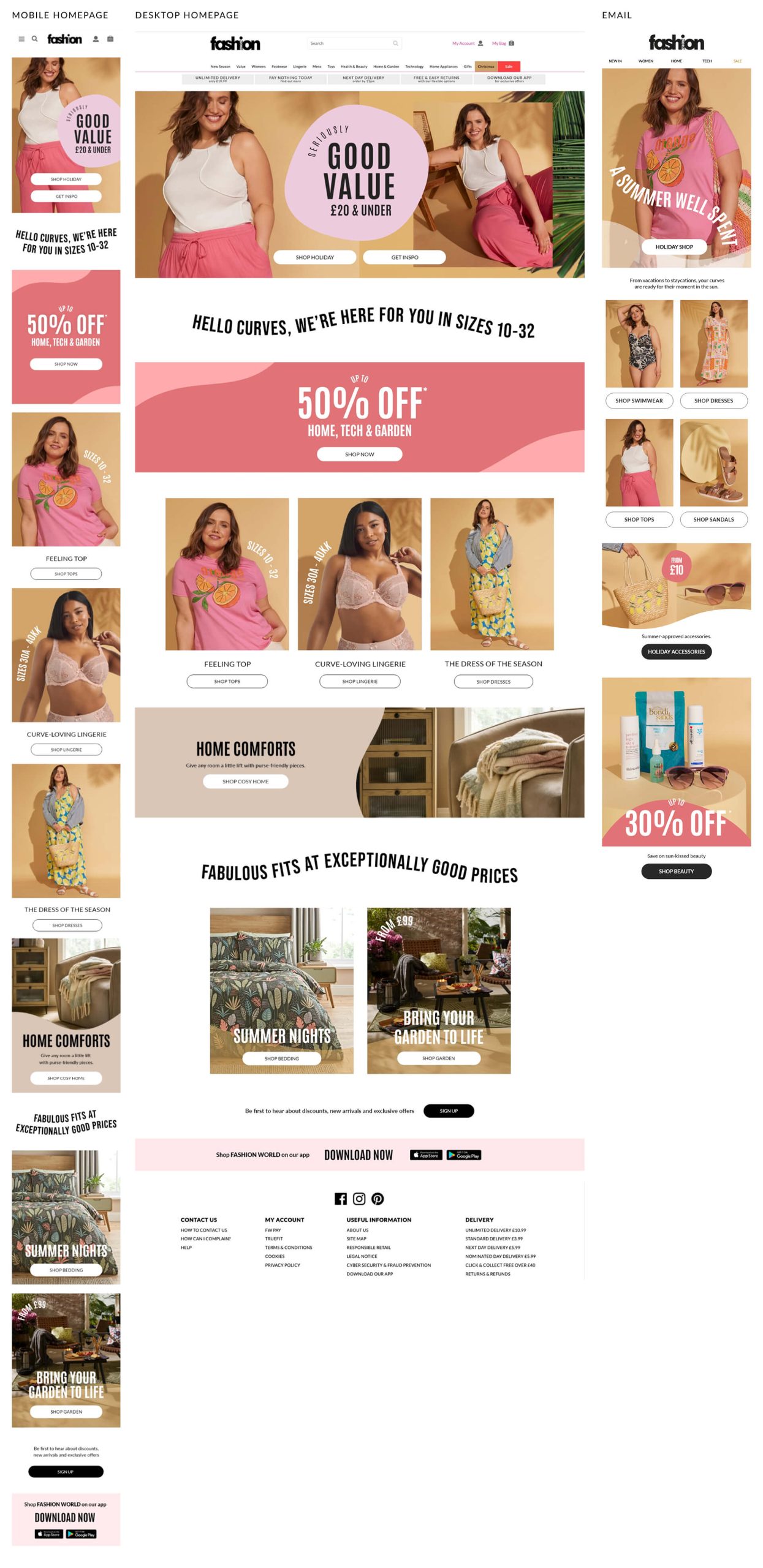 I led the design and strategic build of Fashion World’s digital presence, delivering high-impact weekly and seasonal content. From wireframing to final execution, I ensured all assets—including emails, landing pages, and social media—were optimized for maximum engagement while staying true to the brand’s evolution.