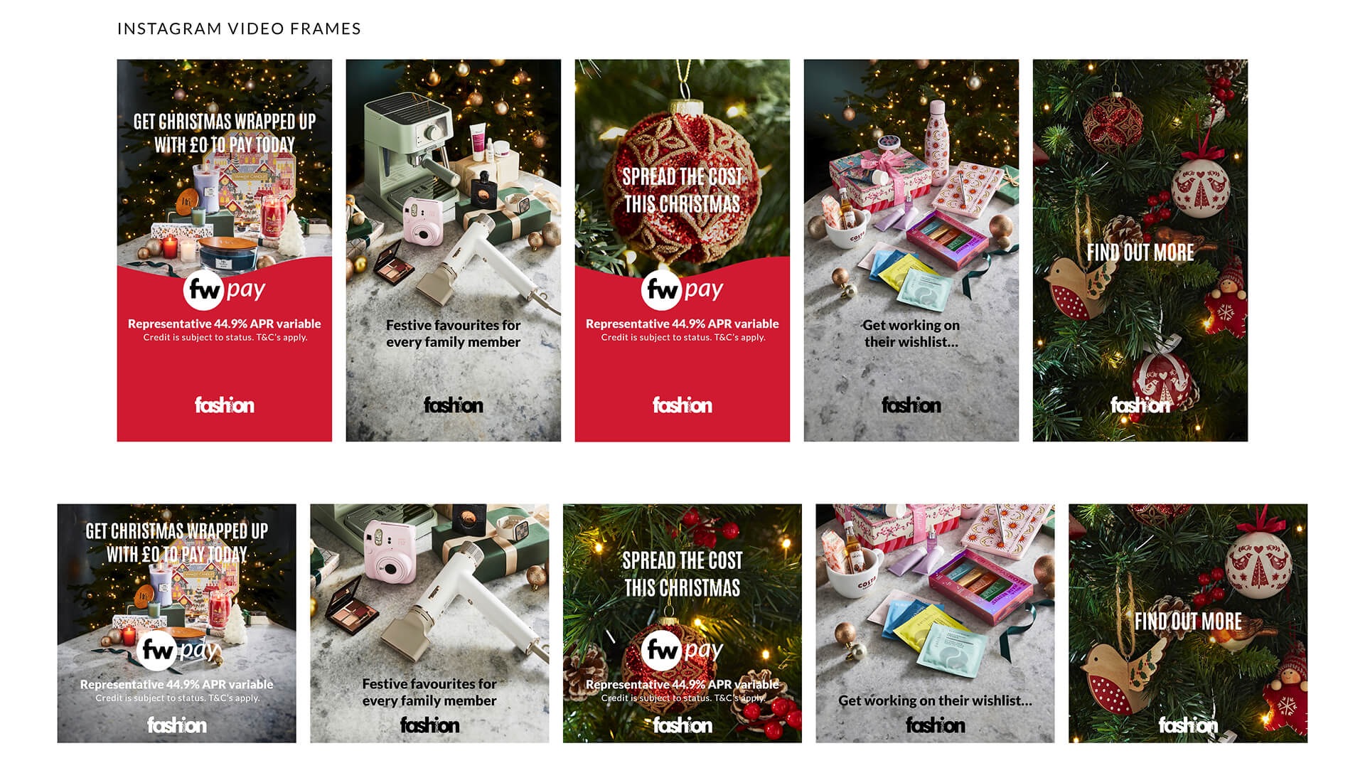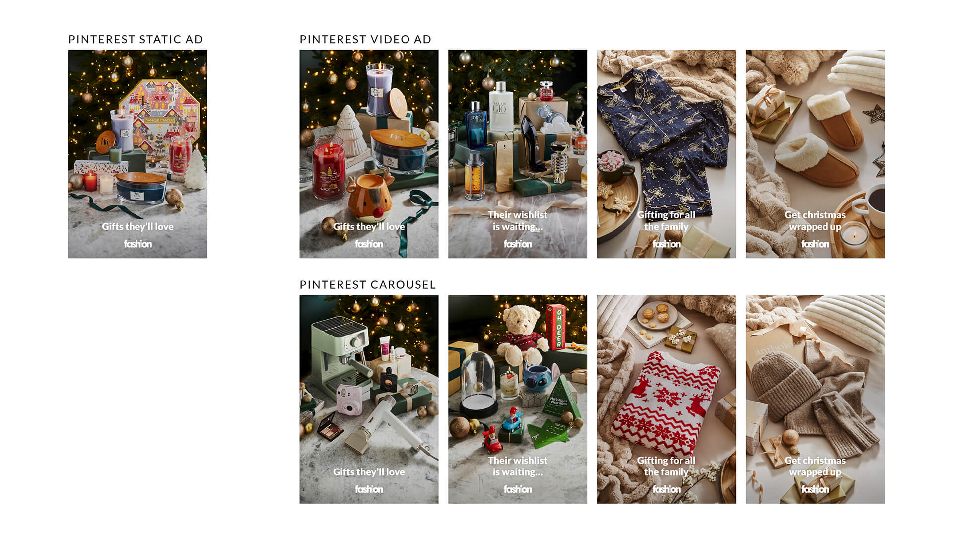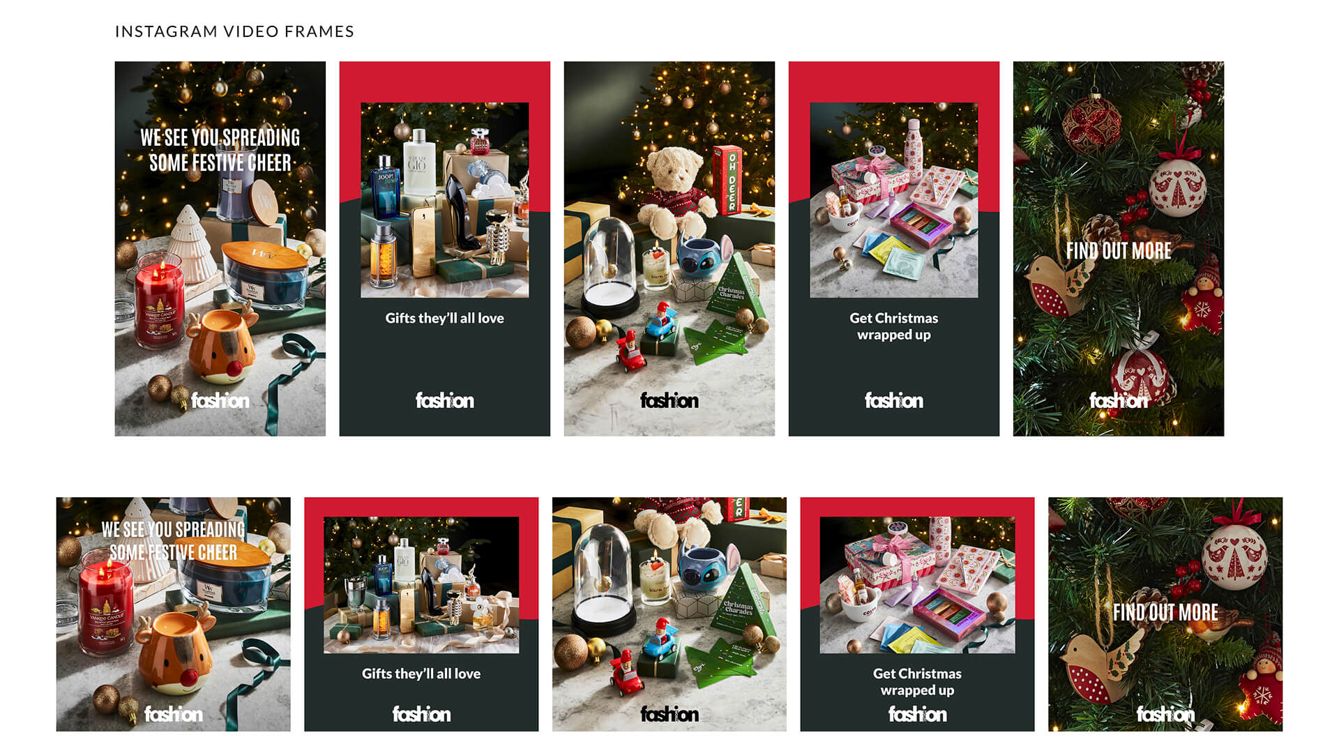 Designed in Adobe XD and animated in After Effects, this campaign uses cozy jumpers and festive decorations to capture the holiday spirit. These motion assets focus on inspiring gift products and warm home settings to get the customer excited to shop for Christmas.