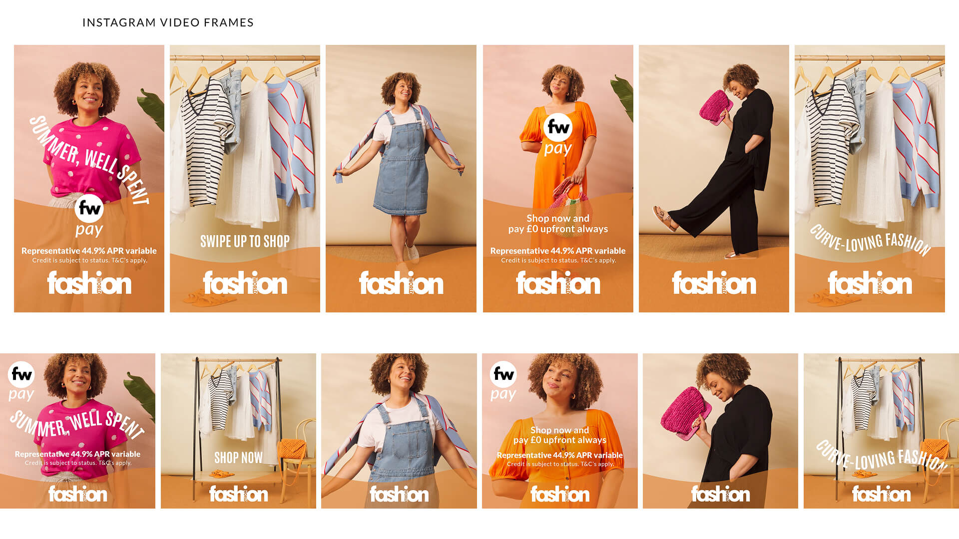 Designed in Adobe XD and animated in After Effects, these promotions feature vibrant, curve-loving fashion and energetic studio photography. The work showcases bright seasonal dresses and curated outfit-building racks to present an inspiring summer wardrobe for paid social.