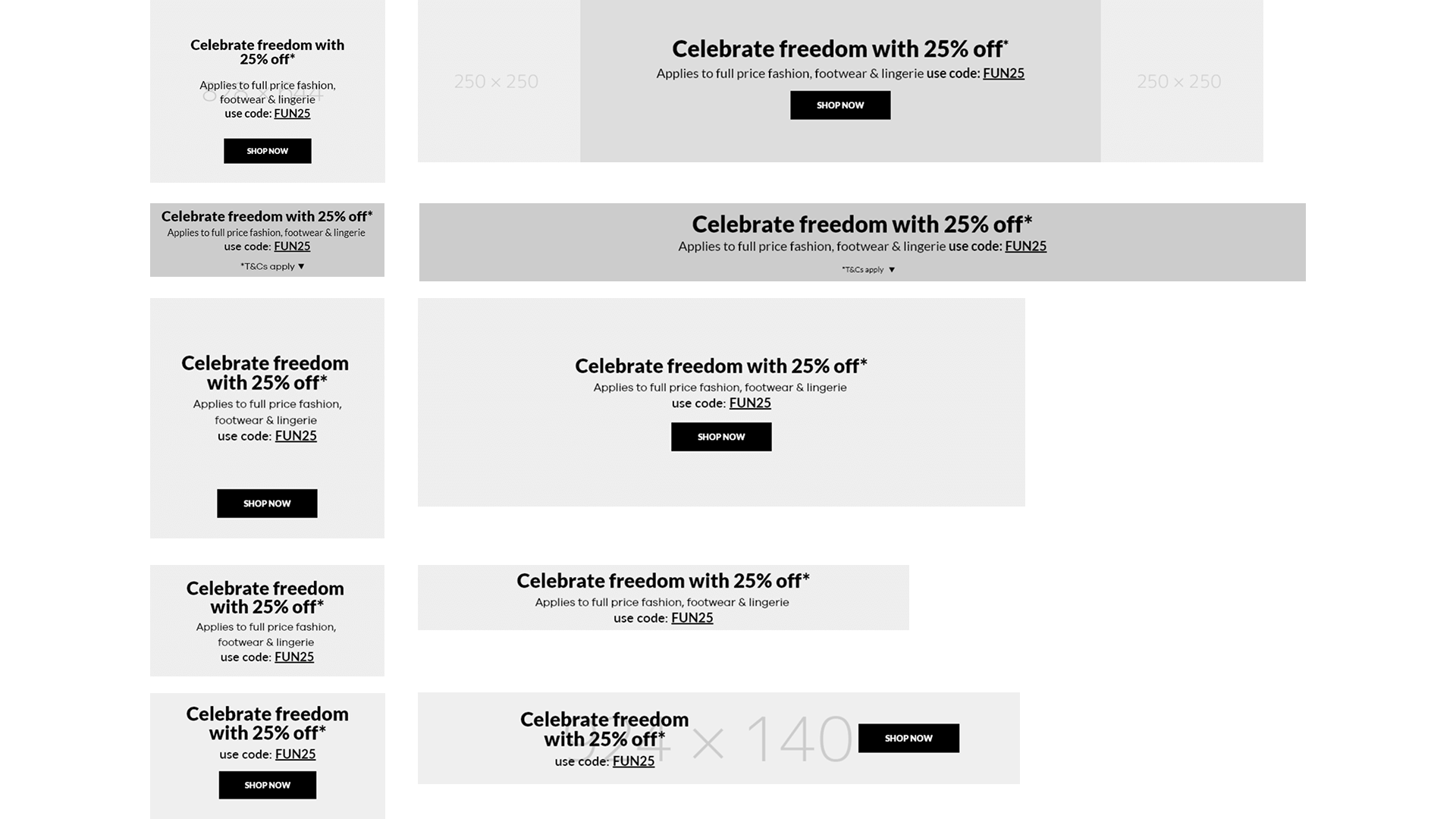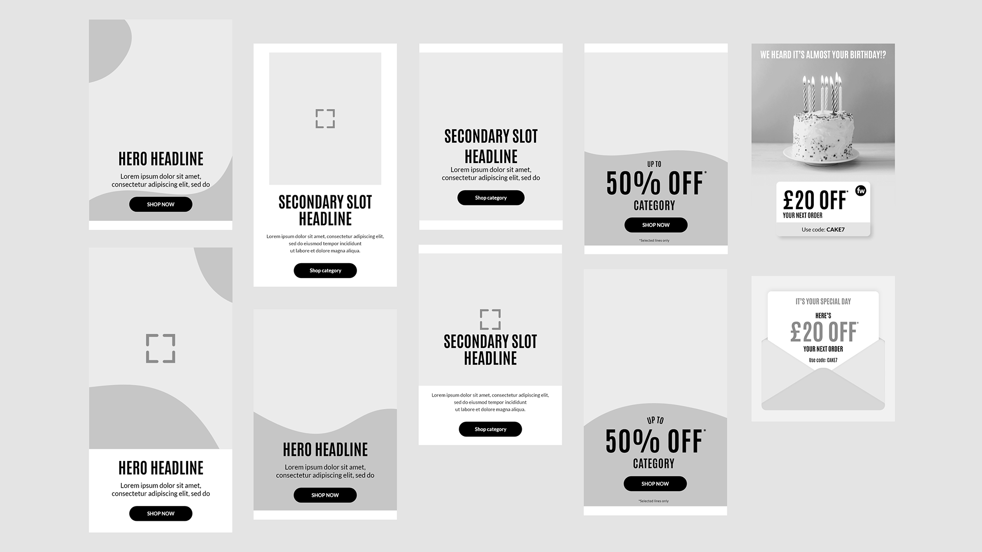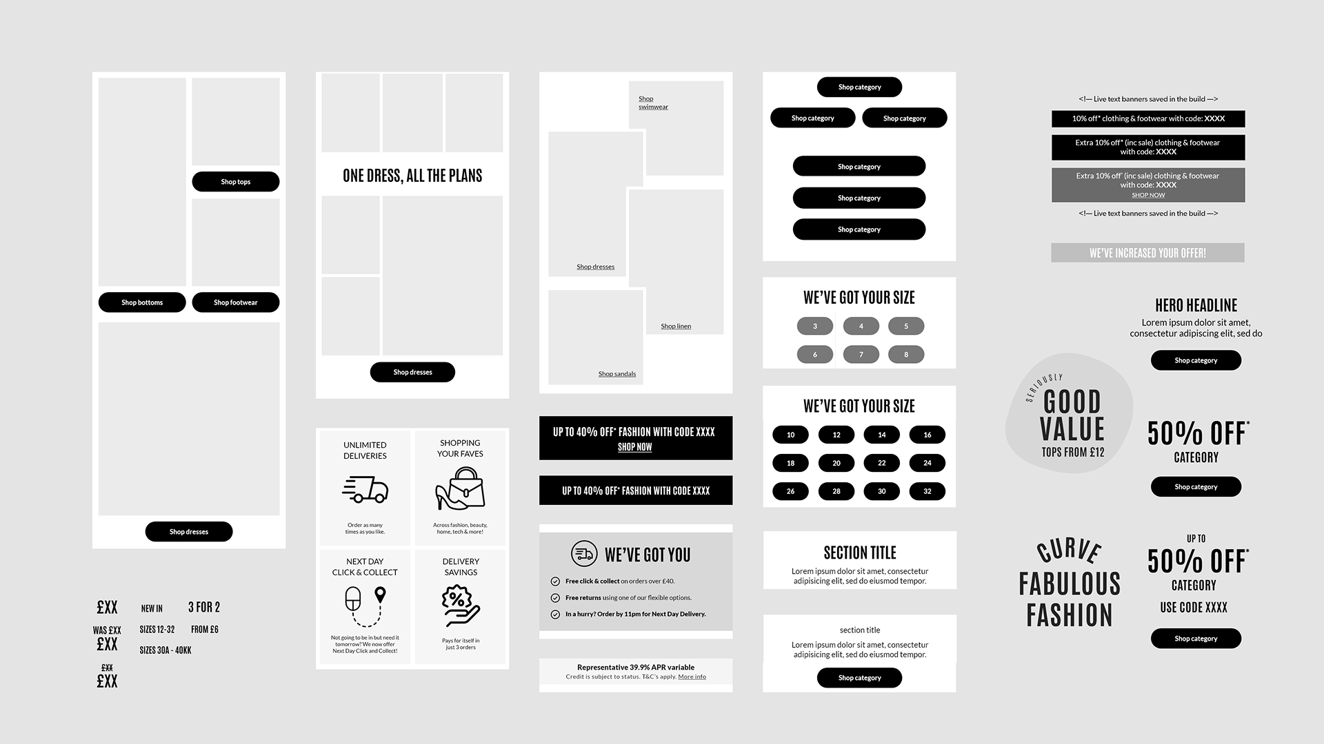 Developed a universal library of banner components in Adobe XD to be used as a “blank slate” starting point for all N Brown websites. This toolkit provided the design team with standardized templates that ensured layout consistency and typographic quality across the entire brand portfolio.