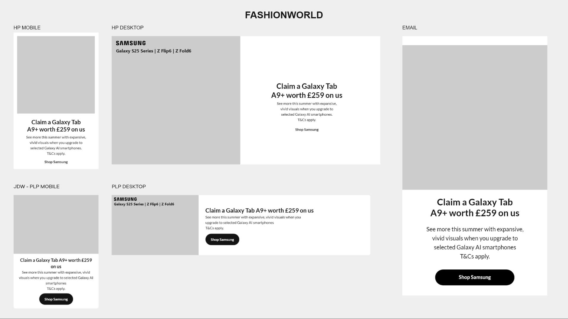 Designed a suite of modular header components for the Fashion World email system. Focused on clean navigation and brand-consistent typography to ensure a seamless transition from the inbox to the main website.